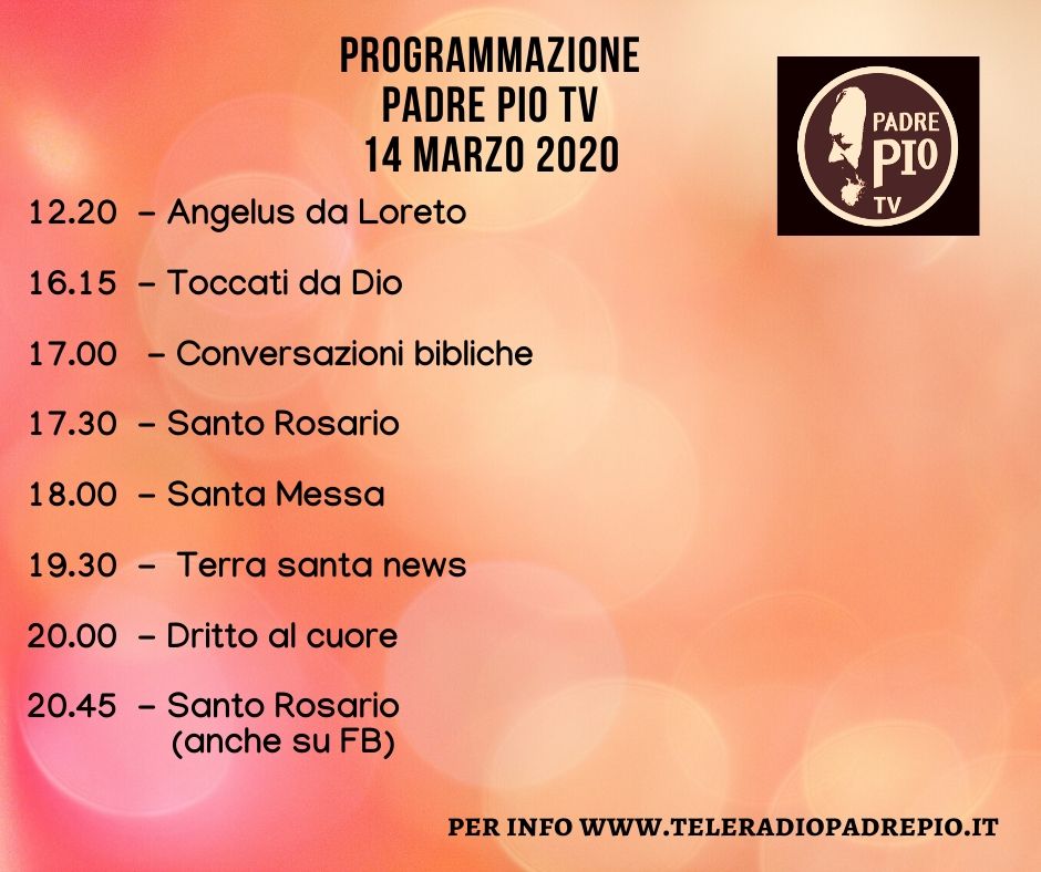 Oggi Padre Pio Tv 14 Marzo 2020